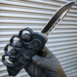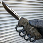 The Biker knuckle OTF is one of the toughest knives we carry. It is a double action OTF knife with 440 stainless steel blade. The knuckle handle is full aluminum zinc alloy that includes a pocket clip and glass breaker stub.