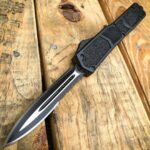 This Combat Recon knife has a dagger style blade and a sturdy black aluminum handle.