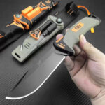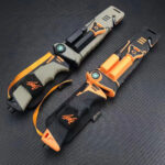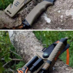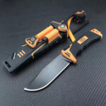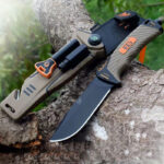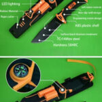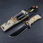 With flashlight, light stick, whistle, knife sharpener, compass, knife sheath